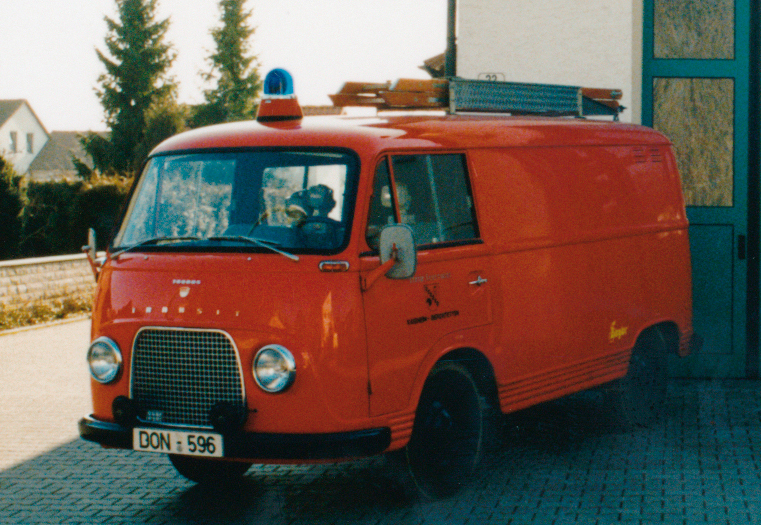 Kommandant Franz Reiner sen. und einige weitere Kammeraden fuhren am 01. Oktober des Jahres 1977 nach Deggendorf um einen gebrauchten Ford Transit, dem künftigen Feuerwehrauto (TSF) der freiwilligen Feuerwehr Bergstetten, abzuholen. Der Bergstettener Wehr hat das Auto 4000,- DM gekostet. Das Geld wurde von den 5000,- DM Zuschuss für den Gerätehausbau genommen. |